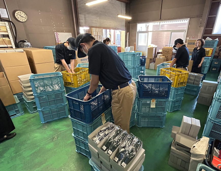 参加者は4名でみんな緊張しながら、職員から作業手順を教えてもらい、自分達もペアになり、バーコードを貼る係、ビニール袋に入れる係と分かれて作業開始。2日目は小箱に梱包、大箱に梱包する作業を2日間行いました。